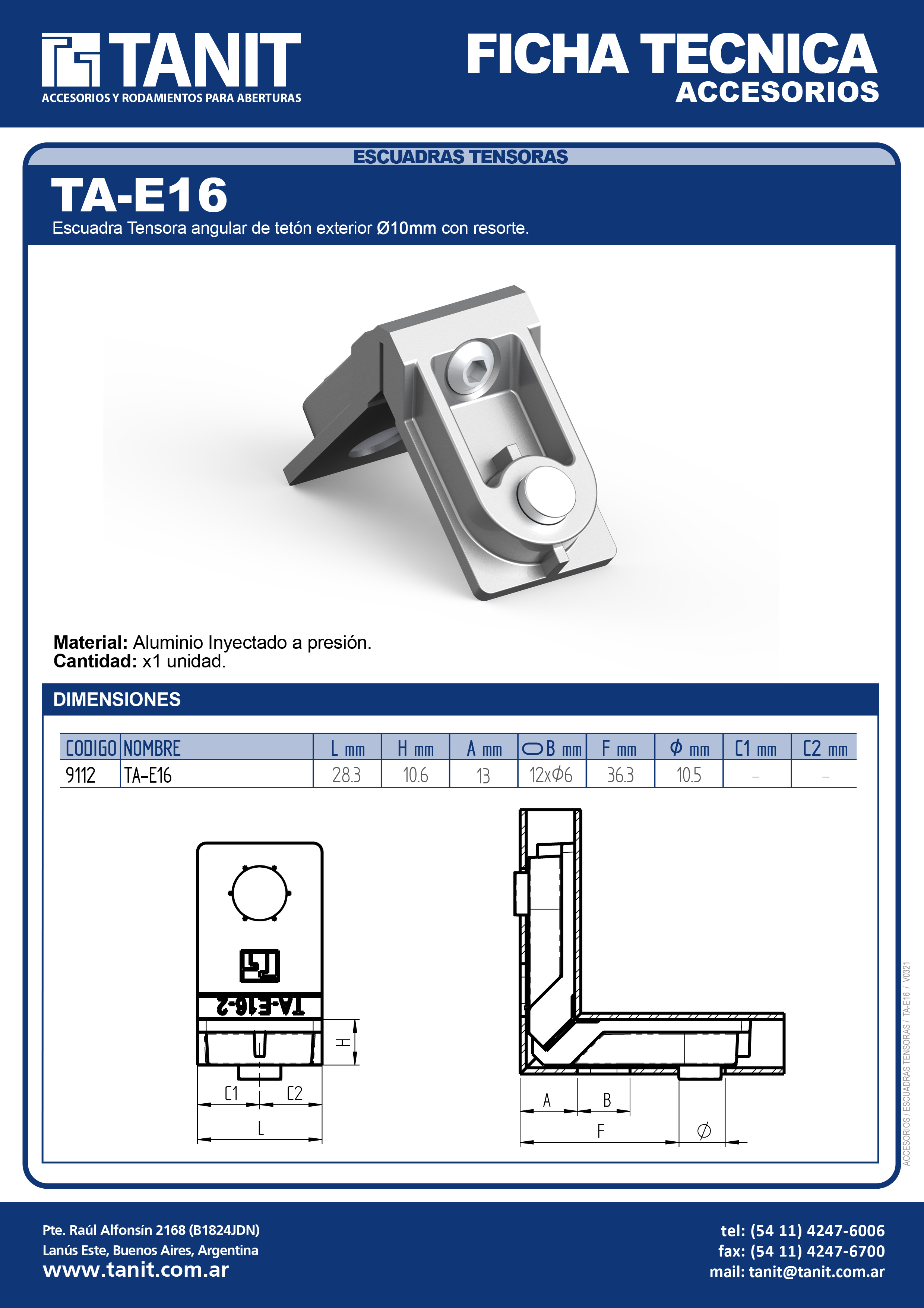 Familia: Escuadras Tensoras Extrusora: Línea: Tipo: Perfil: TA-E16 Aplicación Presentación Descargas Videos FICHA TECNICA TA-E16