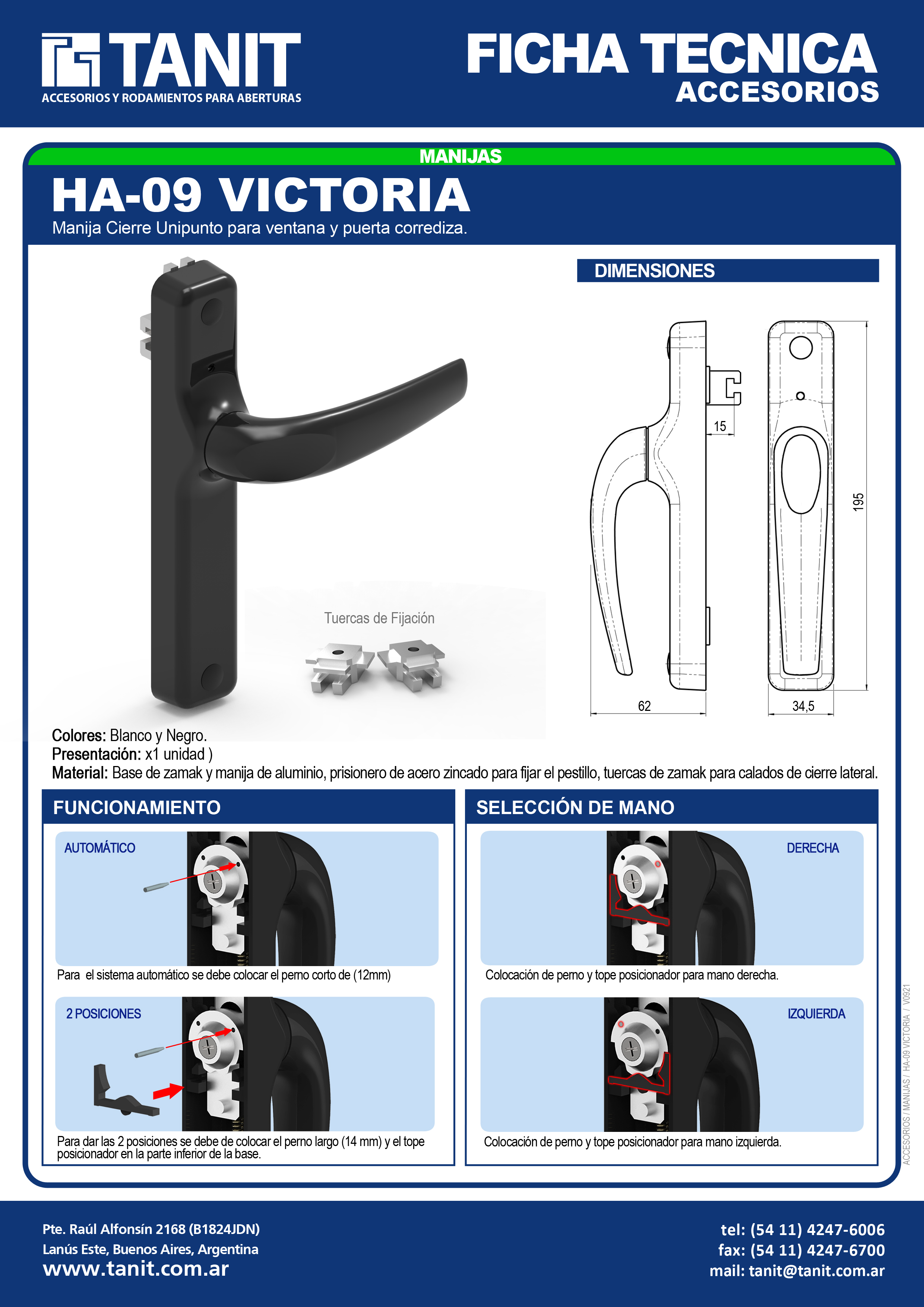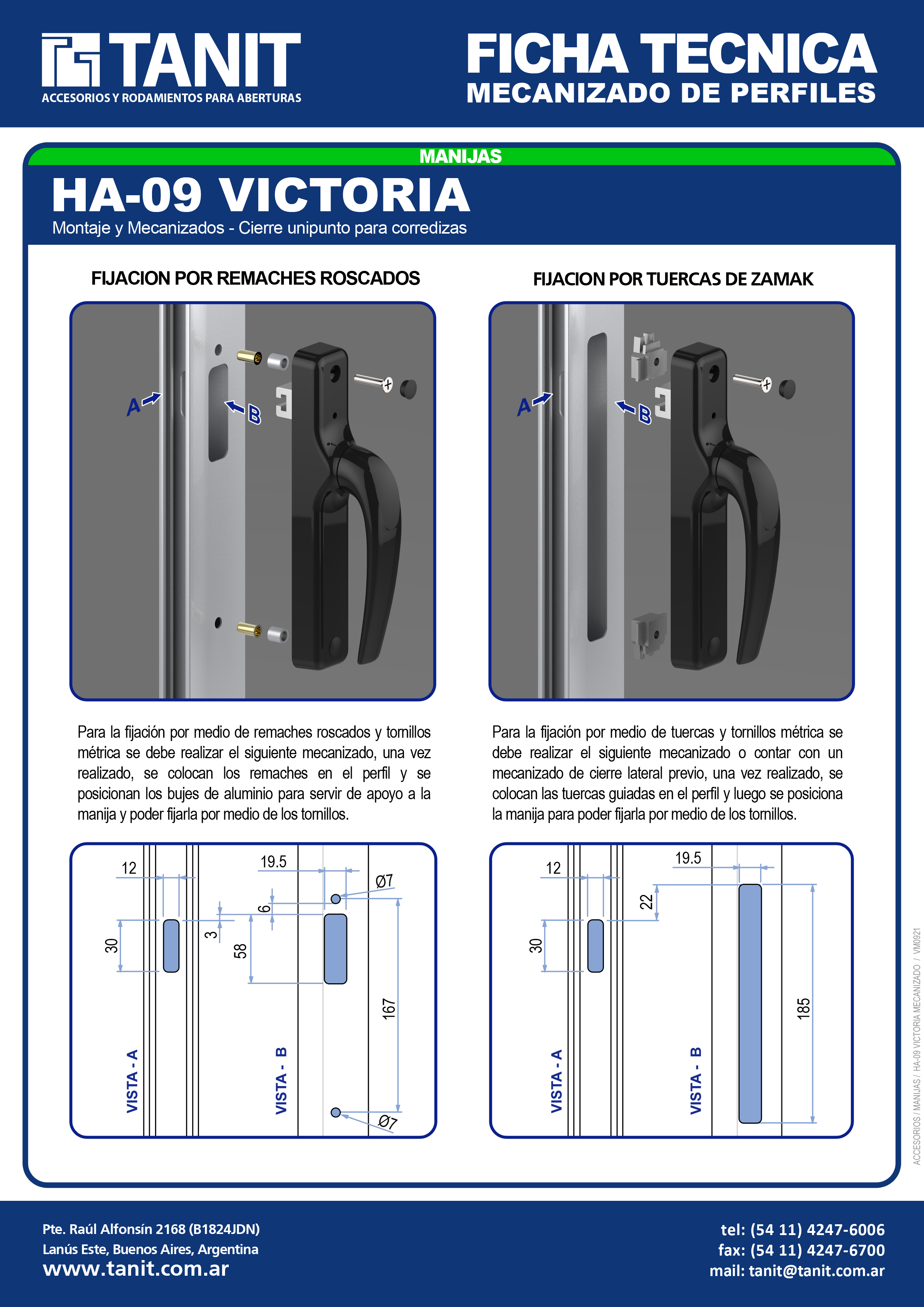 Familia: Manijas Extrusora: Línea: Tipo: Perfil: HA-09 VICTORIA Manija Cierre Unipunto para ventana y puerta corrediza. Aplicación Presentación Descargas Videos COLORES: Blanco - NegroCANTIDAD: x1 Unidad FICHA TECNICA HA-09 VICTORIAFICHA TECNICA PROLONGADORFICHA TECNICA MECANIZADO DE PERFILES
