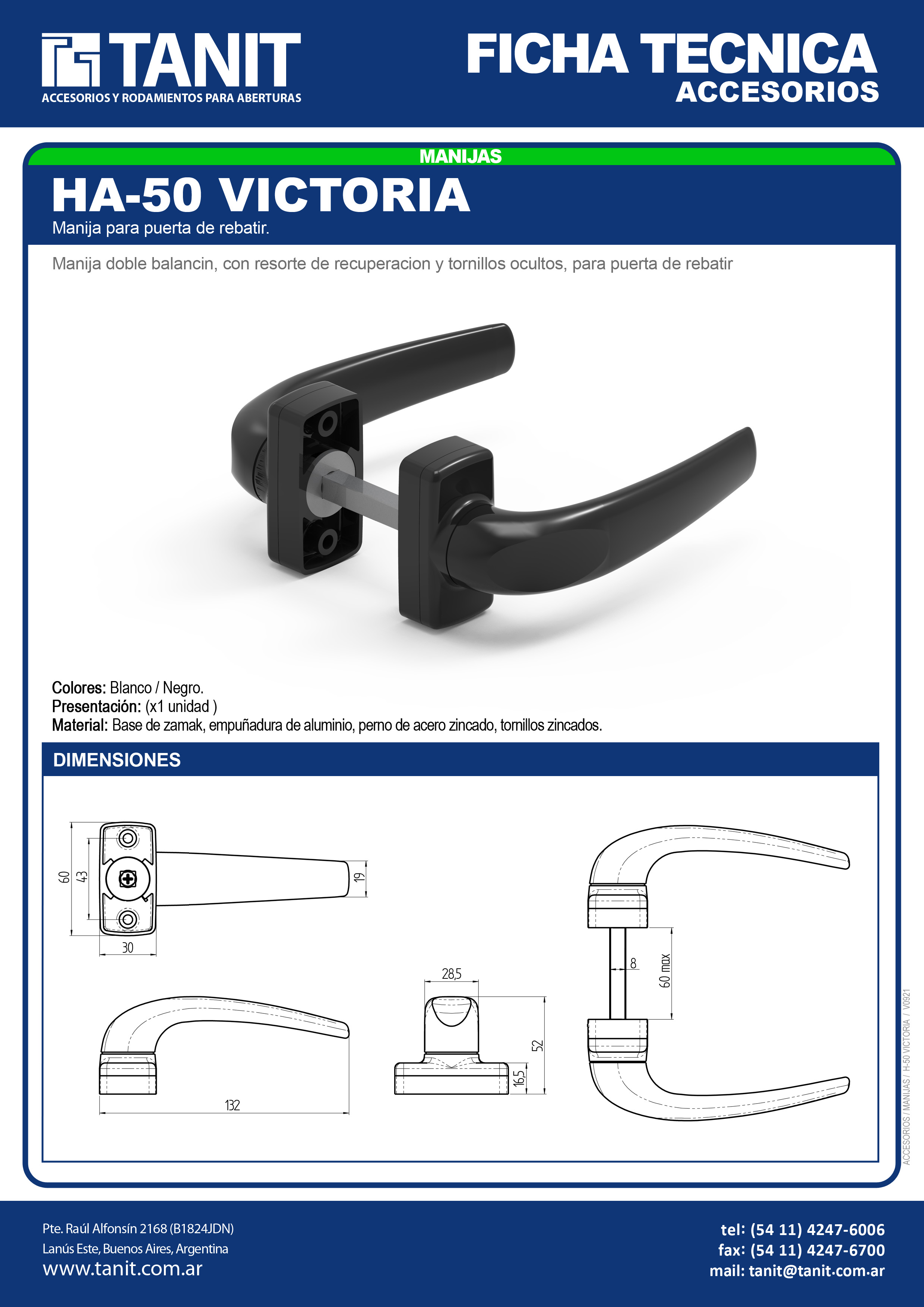 Familia: Manijas Extrusora: Línea: Tipo: Perfil: H-50 VICTORIA Aplicación Presentación Descargas Videos FICHA TECNICA H-50 VICTORIA v0921