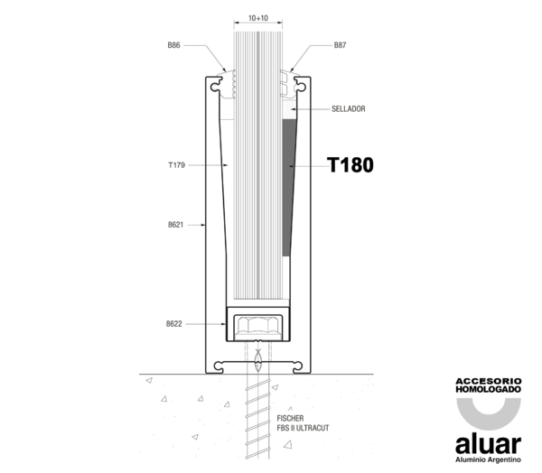 Cuña para vidrio 10+10ALUAR: A40 CRISTAL (Baranda Autoportante)