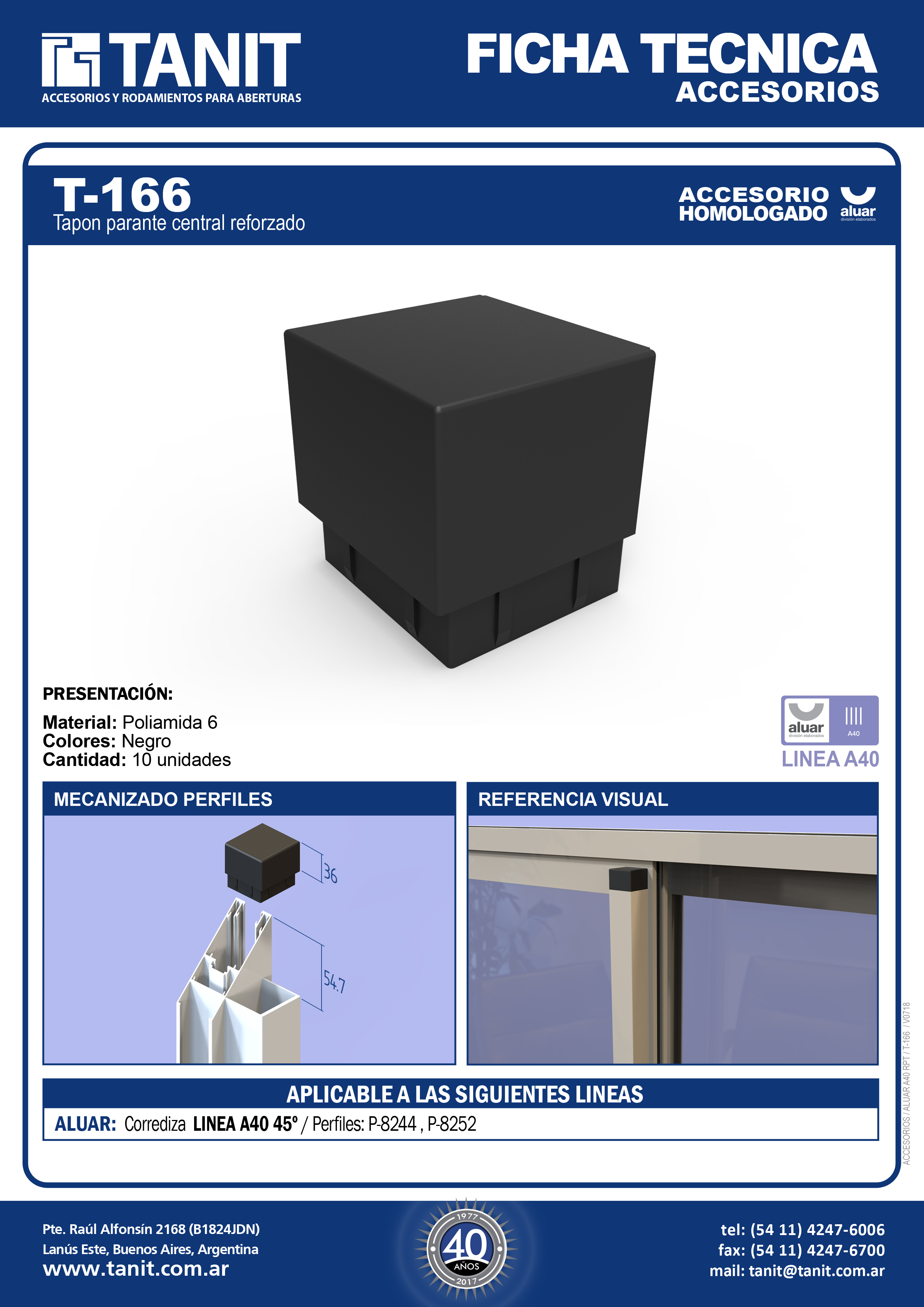 TAPON REFUERZO PARANTE CENTRAL HOJA A 45°ALUAR: A40 45º
