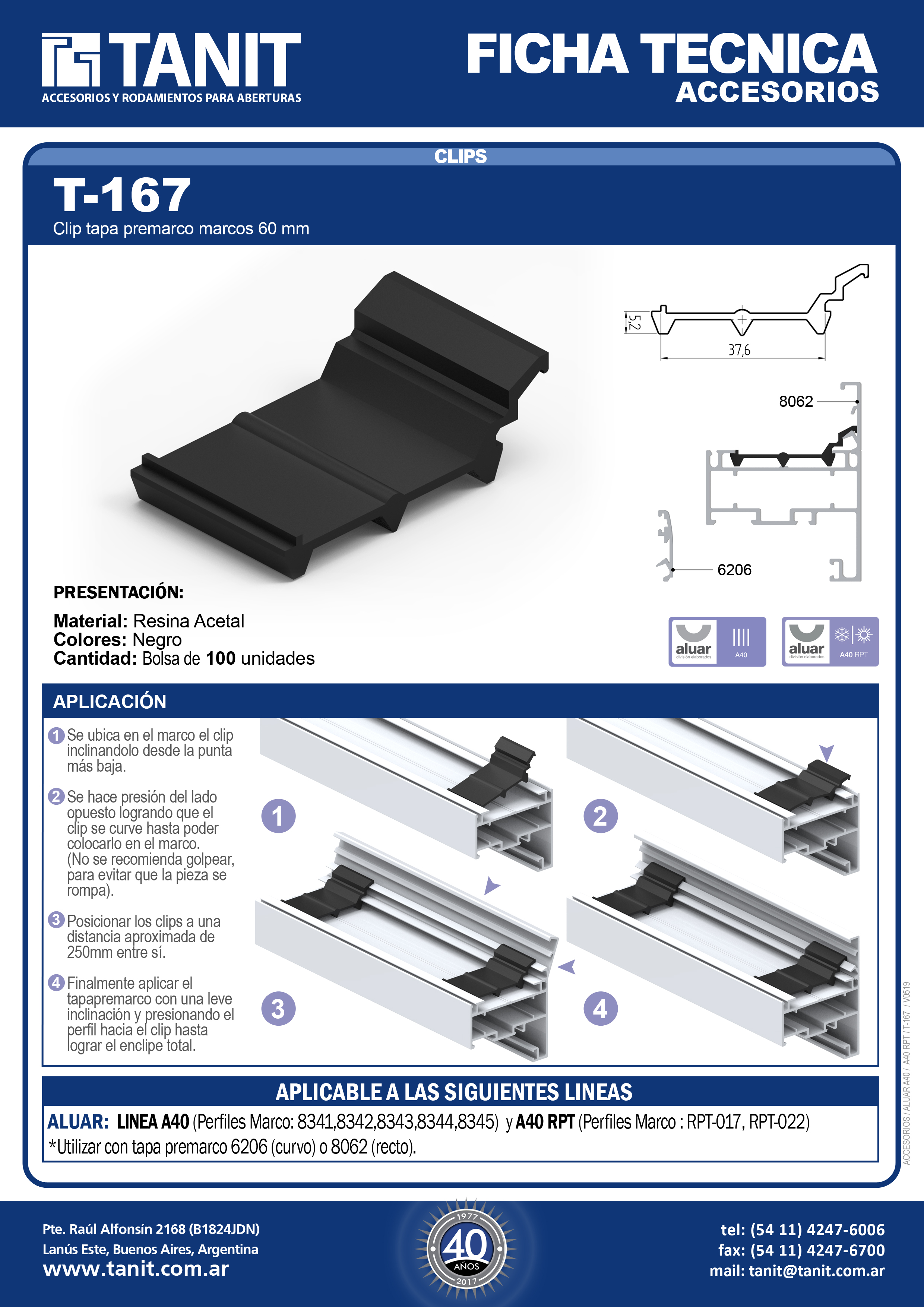 CLIP TAPA PREMARCO MARCOS DE 60MMALUAR: A40